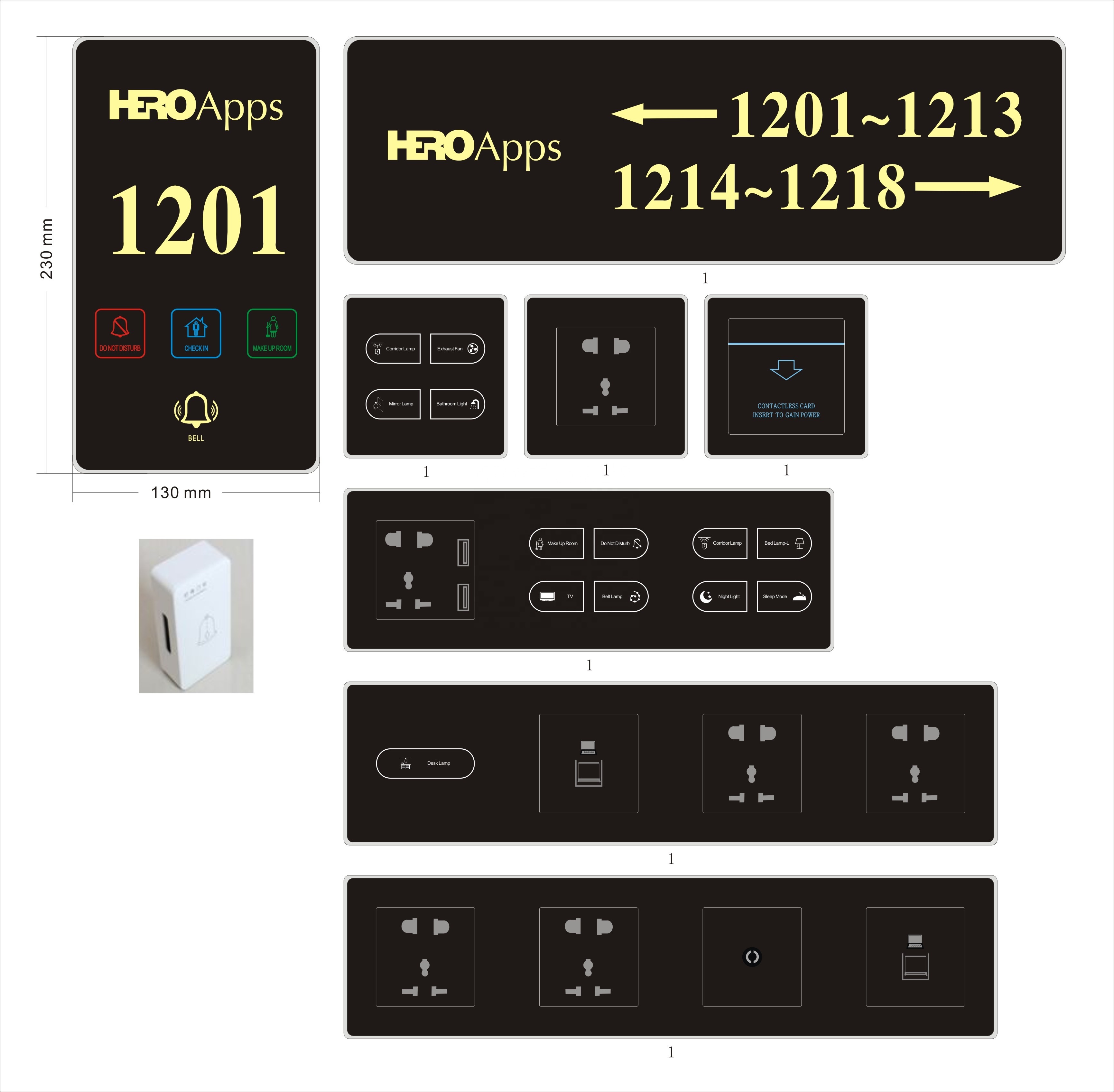 Premium touch-controlled electronic doorplate system designed for 5-star hotels, featuring DND switch and doorbell functionality.