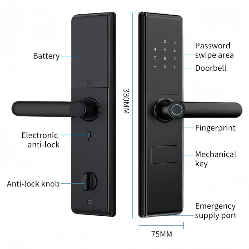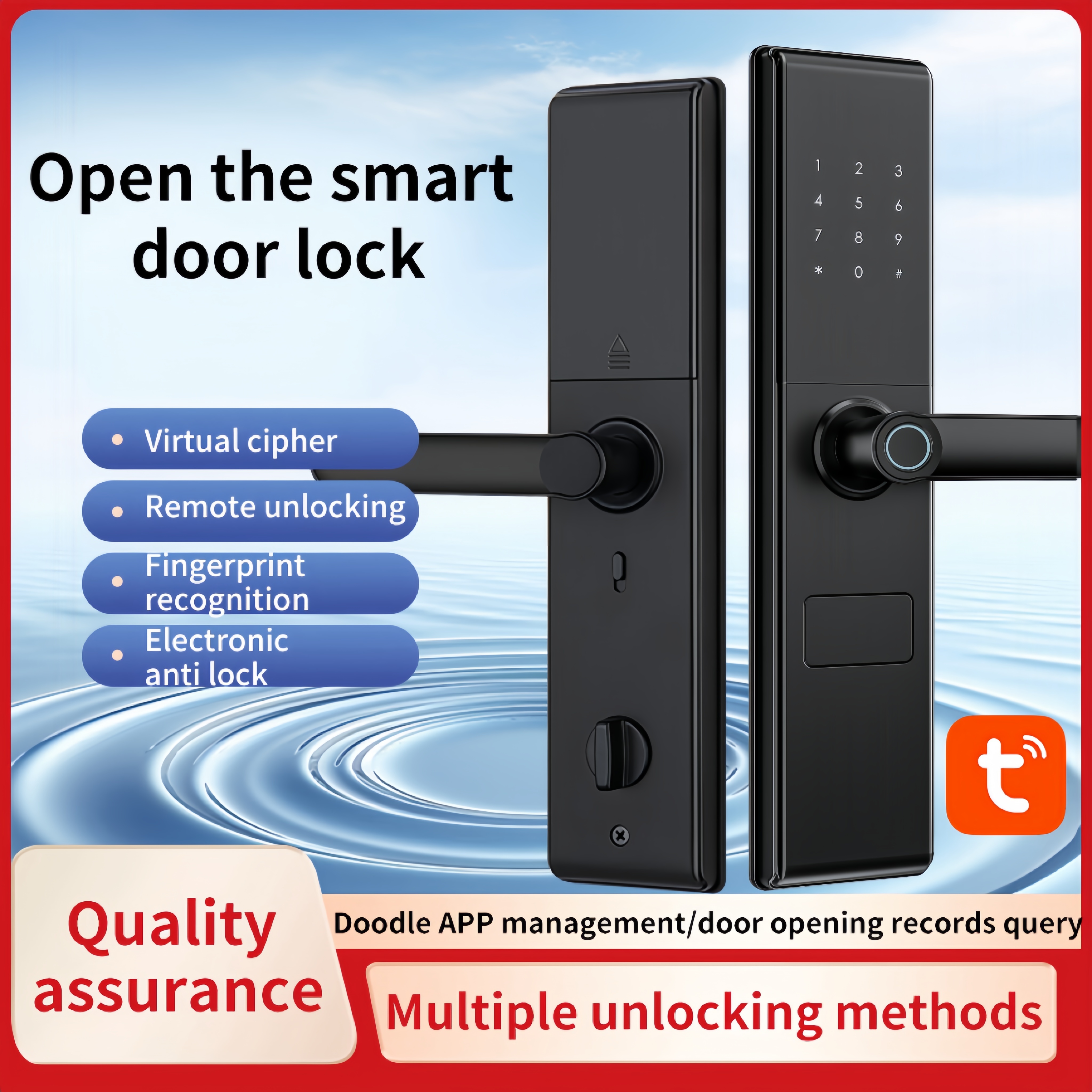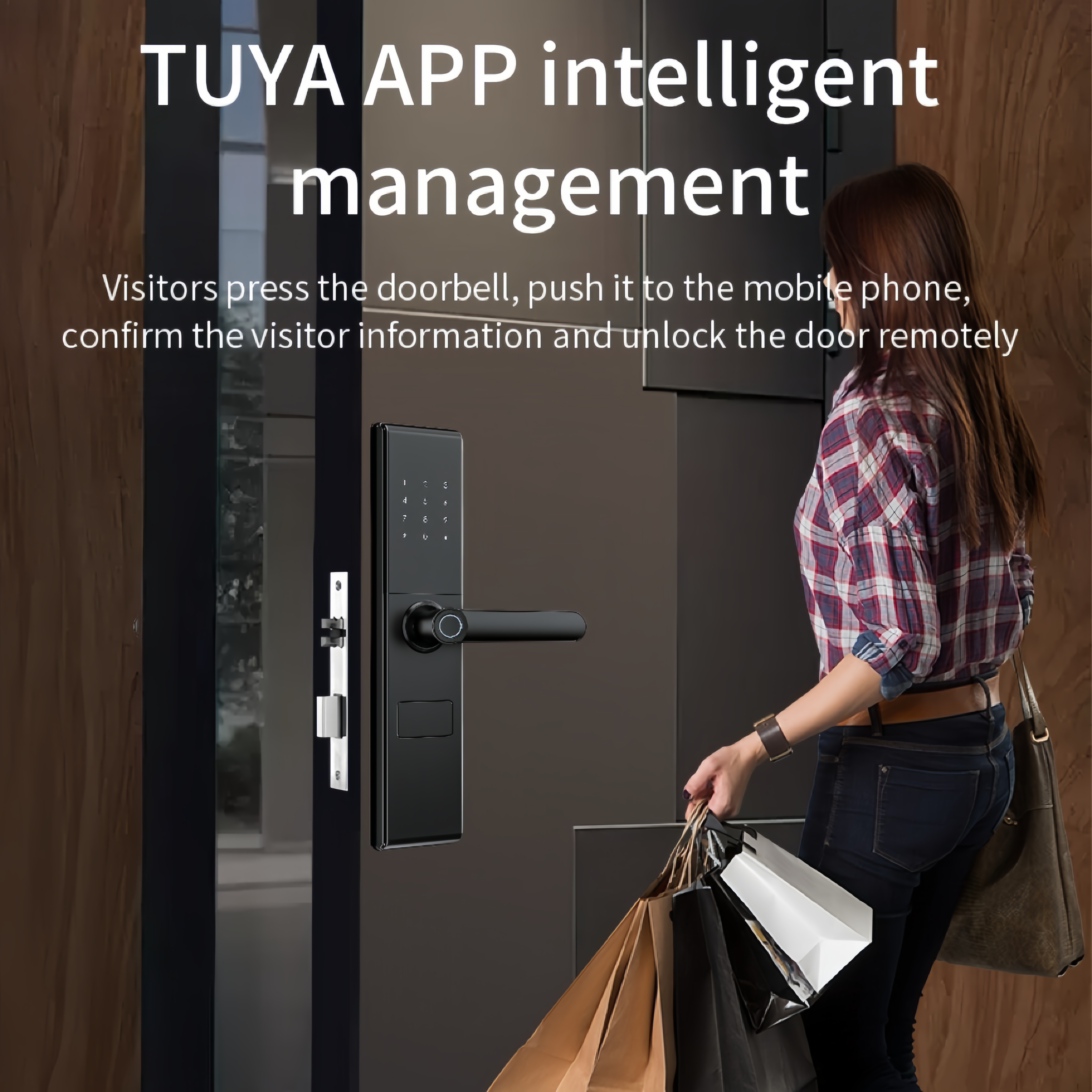 * Πολλαπλές επιλογές ξεκλειδώματος Υποστηρίζει δακτυλικό αποτύπωμα, κωδικό πρόσβασης, κάρτα κλειδιού, μηχανικό κλειδί και τηλεχειριστήριο της εφαρμογής Tuya.
