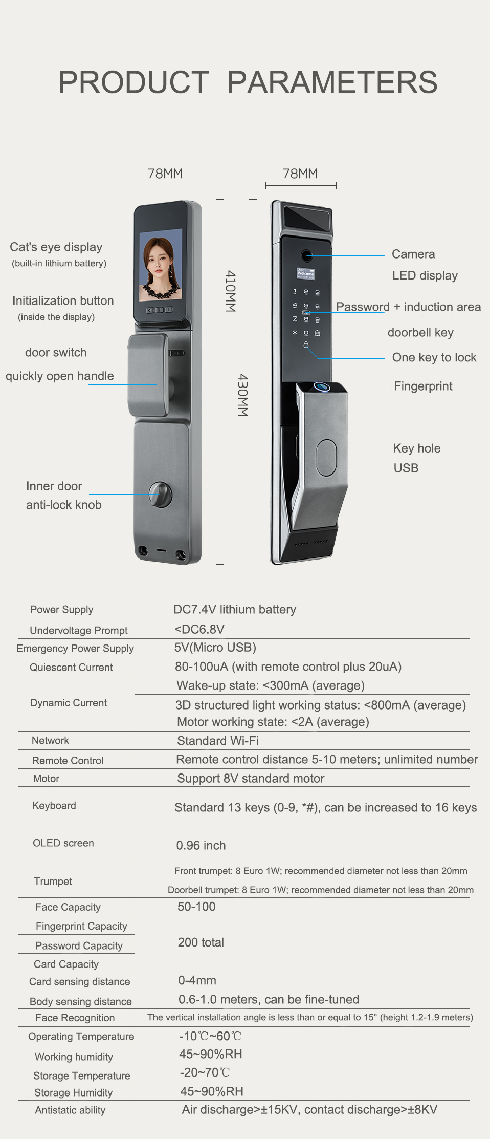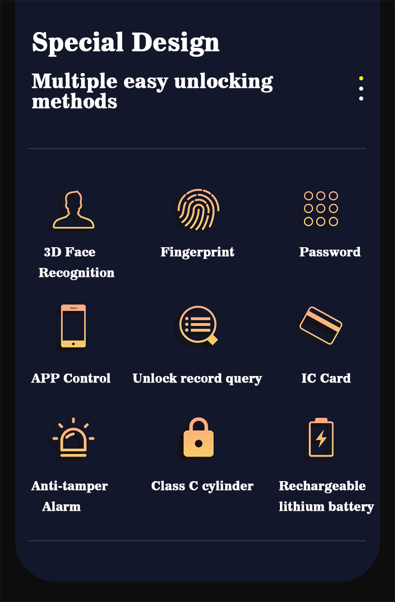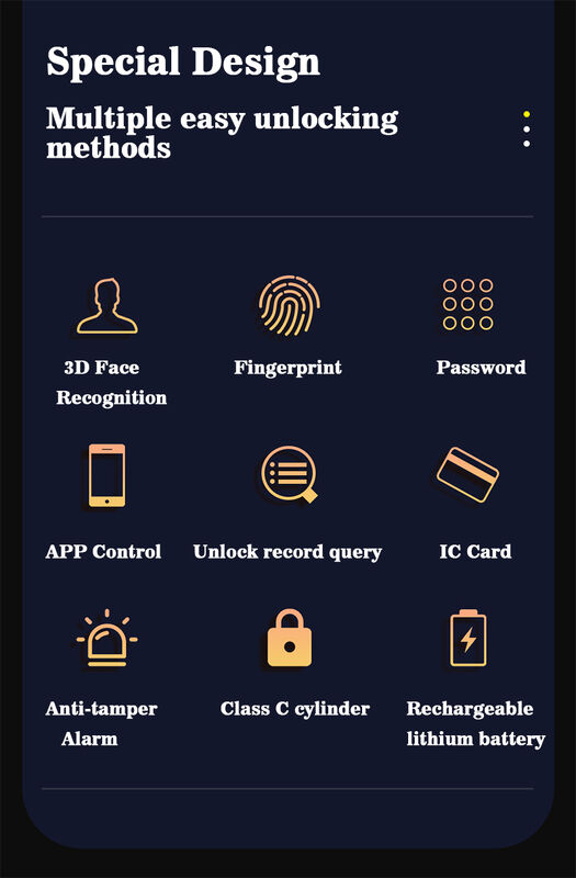 | Μέθοδοι ξεκλειδώματος: | Tuya wifi, κωδικός πρόσβασης, δακτυλικό αποτύπωμα, κάρτα, κλειδί | Βάρος: | 6 kg/τ.μ. |